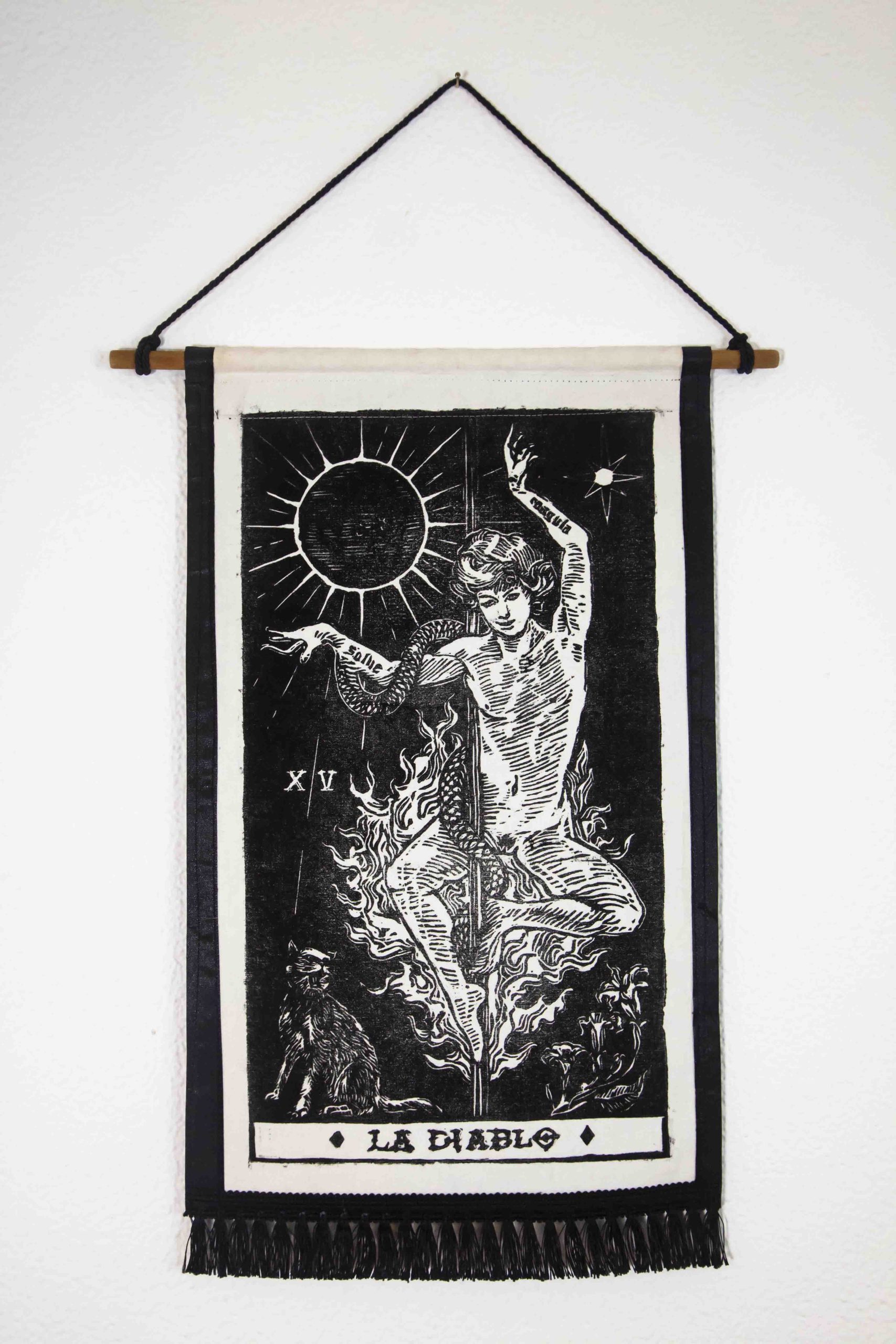 Nella lettura dei Tarocchi “La Diablo – XV”, come per l’Arcano “La Morto – XIII” https://monstera-ink.com/prodotto/la-morto/ non è vista come un’entità negativa, La Diablo è una forza che, se non riconosciuta, “spinge alle spalle”, portando a comportamenti automatici, possessione inconscia e proiezioni.